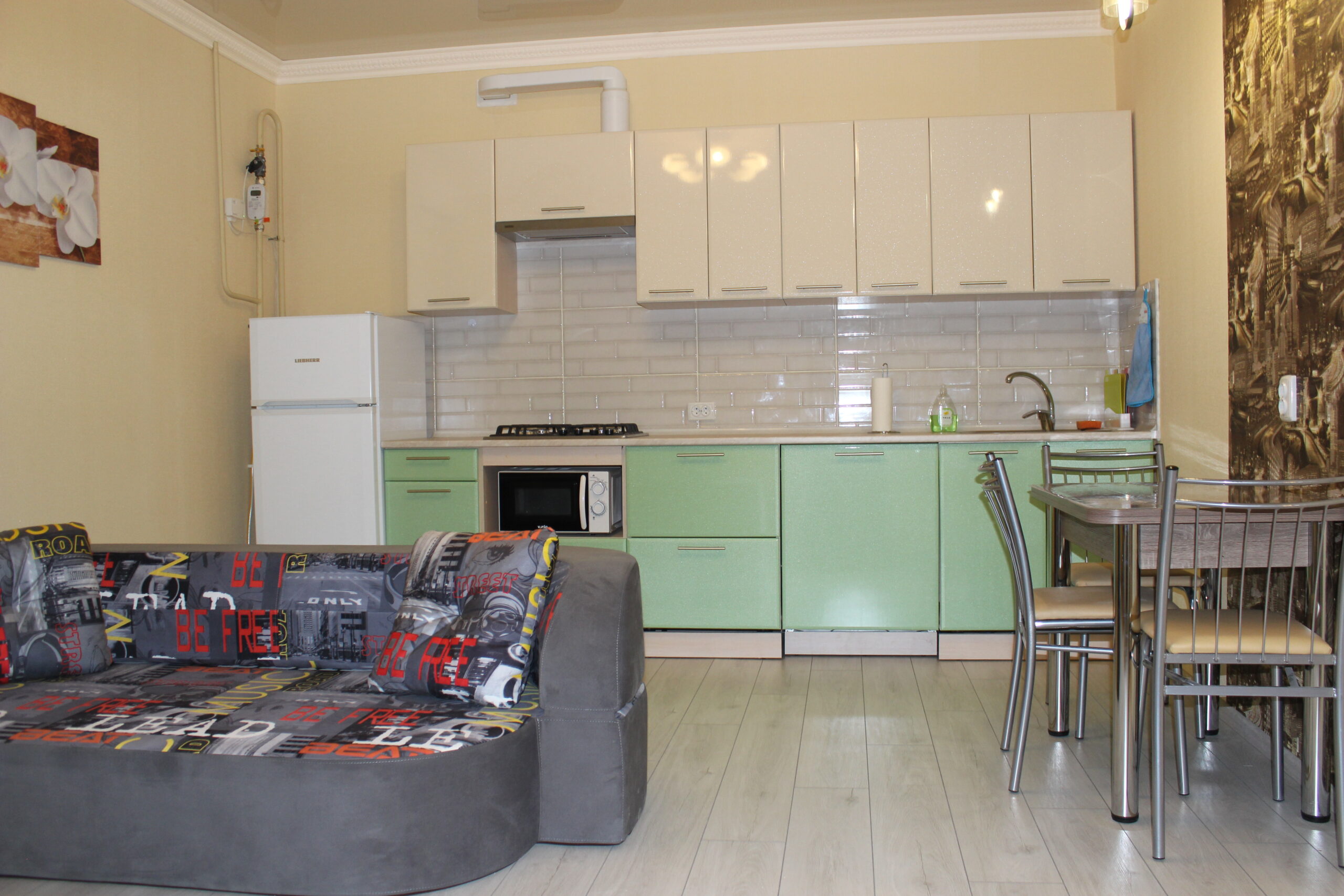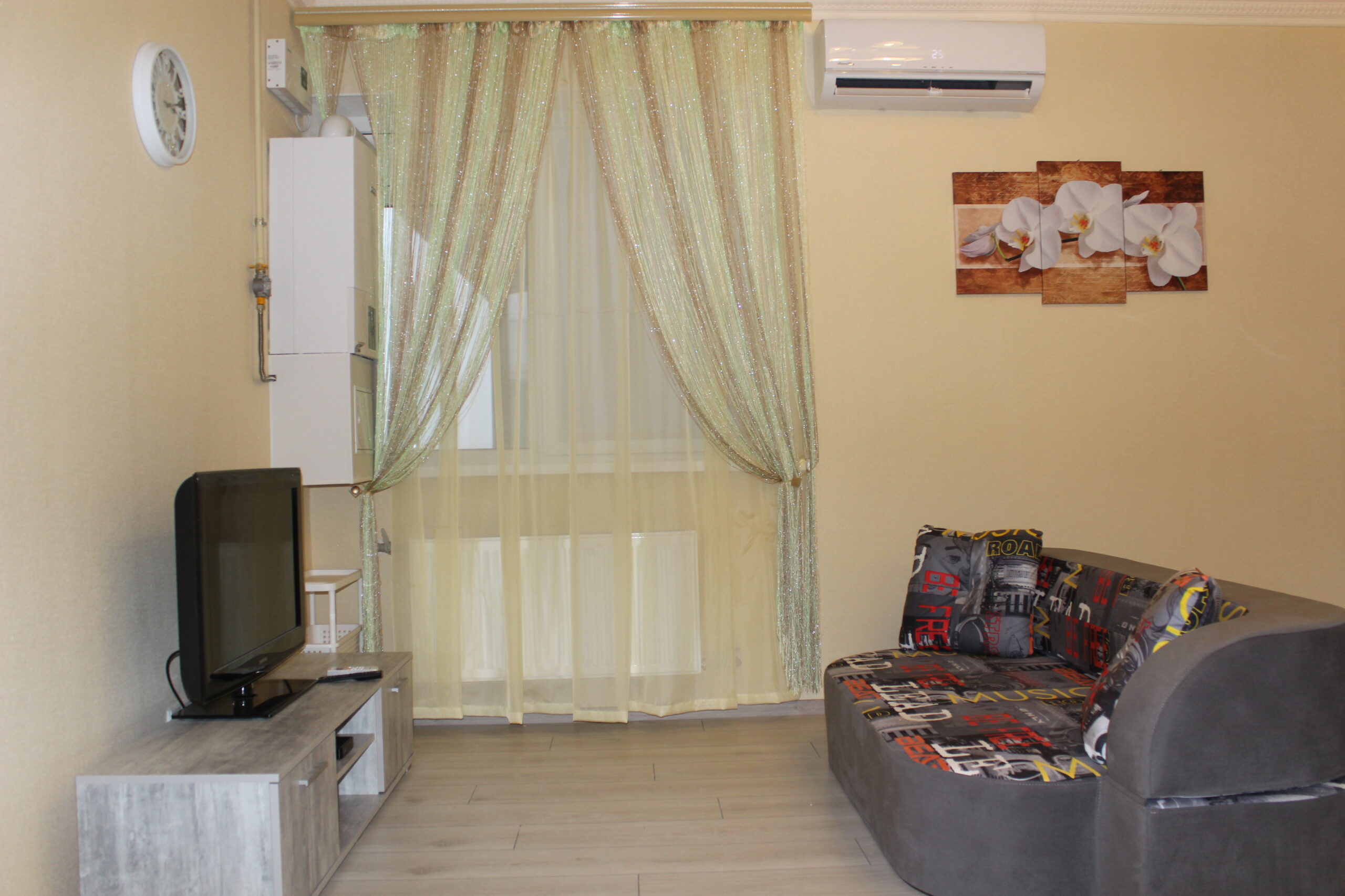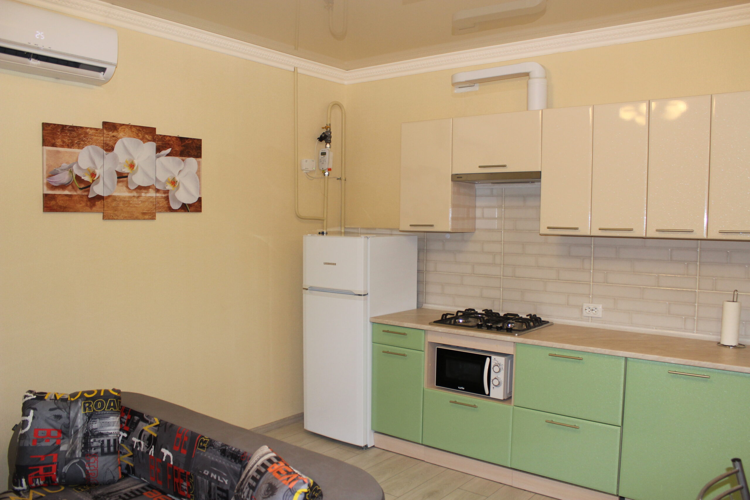 Оснащение: мебель, телевизор, холодильник, кондиционер, посудомойка, стиральная машина автомат (с сушкой), душевая кабина, 2-х контурный газовый котел, газовая варочная поверхность, СВЧ печь и др. Есть видеодомофон с доступом со смартфона, подключен интернет по оптоволокну, Wi-Fi и цифровое телевидение.